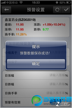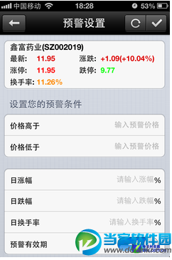 打开消息预警 还有一种是先找到要设置的个股,然后在详细界面点击左上角的设置预警按钮,也可以进入预警设置界面。 设置预警条件 对炒股的人来说,最关心的莫过于股票价格的走势,以便快速、准确地在第一时间作出判断和操作。因此,在大智慧手机版的信息预警首先可以设置的就是价格预警条件,当股价高于或低于用户设定的条件时,大智慧就会给出提示。 保存预警数据 对于手机上的炒股软件来说,除了功能齐全之外,最重要的就是要有一些符合手机特点的功能,比如手机的便捷性,以及操作性。大智慧手机版的预警功能操作简单,在大家随身携带的手机上可以发挥比电脑更具优势的功能,是股民们不错的选择。 以上就是今天当客下载站小编整理的手机大智慧炒股软件设置预警的方法教程。 手机大智慧下载:https://www.downkr.com/soft/21178.html 更多资讯请点击:https://www.downkr.com/article/ 如果大家想了解更多关于软件最新资讯,请持续关注本站,本站小编将在第一时间为大家带来最好看、最有趣、最新鲜的软件资讯。更多精彩内容,尽在当客下载站。 |