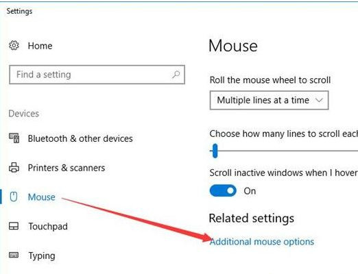 2、在鼠标设置中,按Tab键几次。系统将找到其他鼠标选项,按Enter键。