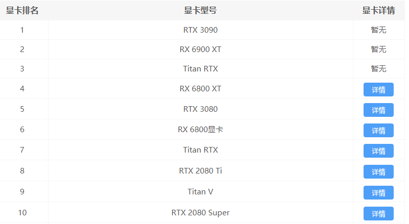 2021年6月的显卡天梯图出来了,6月的显卡天梯和之前的总体来说是没有什么太大的变化的。这里为大家整理了各种型号的显卡排名,对于想要整体参考的用户来说并非适用。下面和小编一起来看看2021年6月的显卡天梯图吧! 2021年6月的显卡天梯图 显卡前十名排行榜 推荐显卡 1、NVIDIA的RTX3080和3090的12代是比较贵的。 2、NVIDIA的话gtx160011代以上就差不多了。 3、ADM的比较推荐RX580左右的。 怎么看显卡好不好? 一般来说显卡后面带着的数字表示显卡的处理处理能力 数字越大越好 不过第一个数字是代数,意义不大 要从第2位开始看起 对于数字为3位的,数字前为gt,gts,gtx的是nvidia显卡,第2位数值4及以下的是低端卡以及中低端卡,性能一般 5是中端显卡,性能不算强也不弱,玩游戏还可以,6以及更大数值就是高端卡以及顶级卡了,性能强大 数字为4位前面字母为hd是amd显卡,第2位为7以下的就不要看了,不值得买,第2为为7的,中低端,8,中端以及中高端,9高端以及顶级 至于Rx xx0(x代表数字)是amd的系列显卡,目前只有2xo系列 240.是低端 260,中端,270级以上高端乃至顶级 |