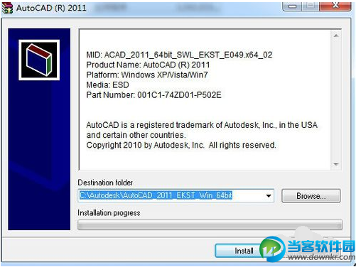 autuCAD2011是做为矢量制图软件,它不是技术人员电脑的专利,很多不会使用这个软件的人有时也需要安装用来查图观看,但是很多刚接触到这款软件的新手都往往不太懂的怎么安装这款软件,今天当客小编就给大家介绍下怎么安装这款软件。 相关软件推荐: Autocad2011 官方中文破解版:https://www.downkr.com/soft/40468.html Autocad2011安装教程: 1、到网站上下载CAD2011软件安装包,其大小约为3G左右(一般包含注册机在内),要注意64位与32位的区别,查看电脑操作系统位数执行右击我的电脑,属性,选择适合自己电脑的进行下载。 2、解压安装包,找到安装应用程序及注册机 3、双击安装包,点击“instal”开始解压抽取文件,大约需5-15分钟,根据电脑运行速度而定。(注意这里最好保持默认的安装路径,CAD程序运行为全英文调用,更改可能导致出错) 4、进入安装页面后,点击安装产品,下一步。