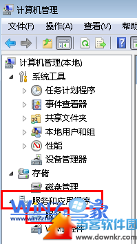 2、在打开的管理界面中,依次展开“管理--服务和应用程序---服务”选项;