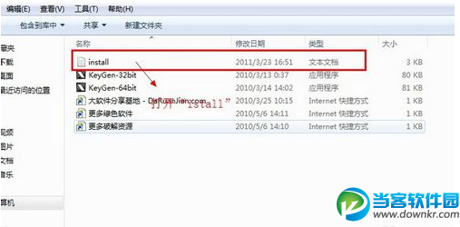 8、找到“install”文件,在我们解压出来的文件里面找到“注册机”文件夹。在里面找到并打开“install”文本文档