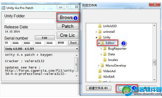 8.打开破解工具点击“Browse”选择软件的安装目录“Editor”文件夹下