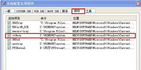 2、在“启动”页中选中“Ctfmon.exe”,点击下方“确定”;
