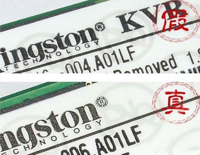 最近有用户的电脑主机插上内存之后会蓝屏,我说蓝屏要么就是系统的问题,要么就是内存的问题,不过系统肯定是没有问题的,我们都是测试好的,她直接说,刚买的内存怎么可能有问题,我说这还真不一定,最后让她先插上一根,排除法来测试一下内存,结果确实有一根内存有故障 ,这一条内存条是假的。那么关于金士顿内存条怎么看真假?很多用户还不是很懂,小编来教大家金士顿内存条真伪查询方法。 金士顿内存条真伪查询与辨别方法 就是这两根金士顿骇客神条内存,一般消费者还真的无法看出来是不是假货,除了马甲是老款之外,在大致外观基本和金士顿真品一模一样,毫无违和感。 因为是马甲条,所以看不到它是什么内存颗粒了,不过稍微懂行一些的朋友,看下标签其实就可以看出来真伪了,内存标签印刷字迹不清晰,明显粗糙浅淡,字体显得比较单薄,尤其是标签上印刷的“Warranty void if remogved”等英文,如果我没有一点英文基础,字体模糊到我都看不出来有些是什么字母,要去猜,如下图所示。 我们再来看看正品金士顿骇客神条内存在标签印刷上所有的文字清晰可见,上面的字虽然小,但是依然十分清晰,一点都不模糊。 在标签的最右侧还有一个防伪标志,金士顿正品内存,防伪采用变色和幻象技术,在不同的角度握住内存的时候,可以看到幻象技术处理过的区域的颜色将从淡红色变为深红色,或从灰色变成深灰色。不过假货的金士顿内存,防伪直接就是两种不同颜色的印刷,无法变色。 我们将内存不同角度看内存防伪的时候,可以幻象技术处理过的区域的颜色已经从淡红色变为深红色,另一角度又从深红色变为淡红色,如下图所示。 外观辨别的方法有很多,比如查看颗粒,还有普条的标签上有个R商标,正品金士顿的注册商标“R”的周围清楚的印有由“KINGSTON”英文字母组成的圆圈,而假货则明显胡乱仿制的一个圆框而已。还有一点,仔细观察标签内部的水印,假内存水印和KINGSTON字体衔接处都有明显的痕迹,证明是后印刷的,这在正品金士顿内存中是不会出现的。 金士顿官方验证金士顿真假内存方法 当然,我们也可以添加“金士顿官方”公众号,来进行在线查询金士顿内存真伪,看看是不是购买到一个假货金士顿内存。在“金士顿官方”公众号中,点击“售后相关”菜单,再点击“验真伪”,具体提示回复“验真伪”,回复“2”,验证内存。 官方会让您拍下内存的正反图片到公众号中,全部发完之后,回复下“1”。 等待鉴定内存真伪完毕之后,就会有结果。 验证结果为该照片中显示的实物产品并非金士顿公司所生产,也就是说明,该内存为假货。 篇后语: 在电脑中,像CPU、内存、硬盘等硬件都是属于比较透明的电子产品了,如果过于市场价格很多的,千万要注意了,要么就是假货,要么就是二手翻新产品,如果商家真的有那么大的成本优势,完全没有必要一根一根去卖,直接大量卖给同行就行了。还是老一句话,千万不要贪图小便宜,否则吃的绝对是大亏。 |