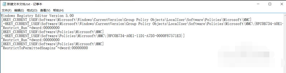 5、但是有的朋友按照以上方法却找不到MMC,这时我们就要新建一个文本文档了,然后将以下内容复制到记事本。