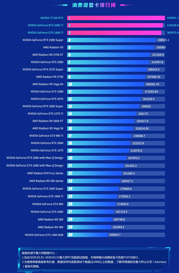 2021鲁大师显卡跑分表 新版鲁大师显卡性能跑分排名天梯图