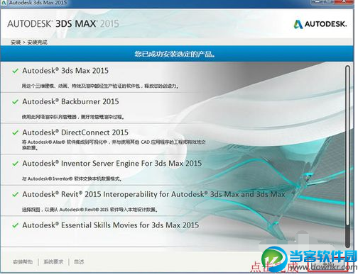7、这里MAX2015 64位中/英文版就安装完成,点击安装完成