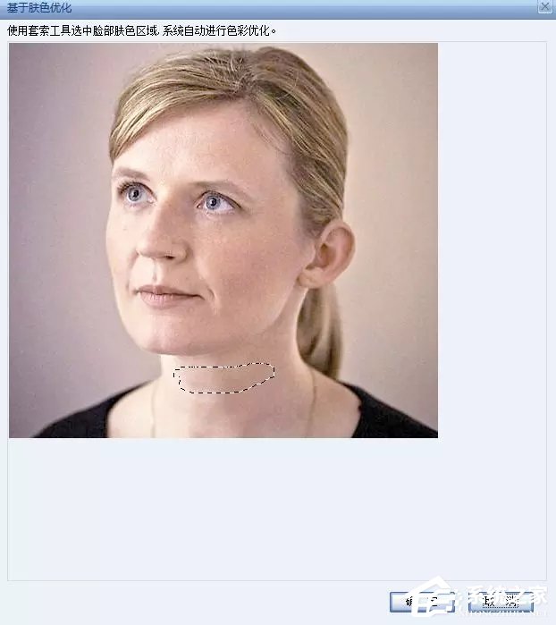 第三步:用套索工具选取脖颈附近的肤色,因为这一块的肤色比较接近于自然,也比较细腻。