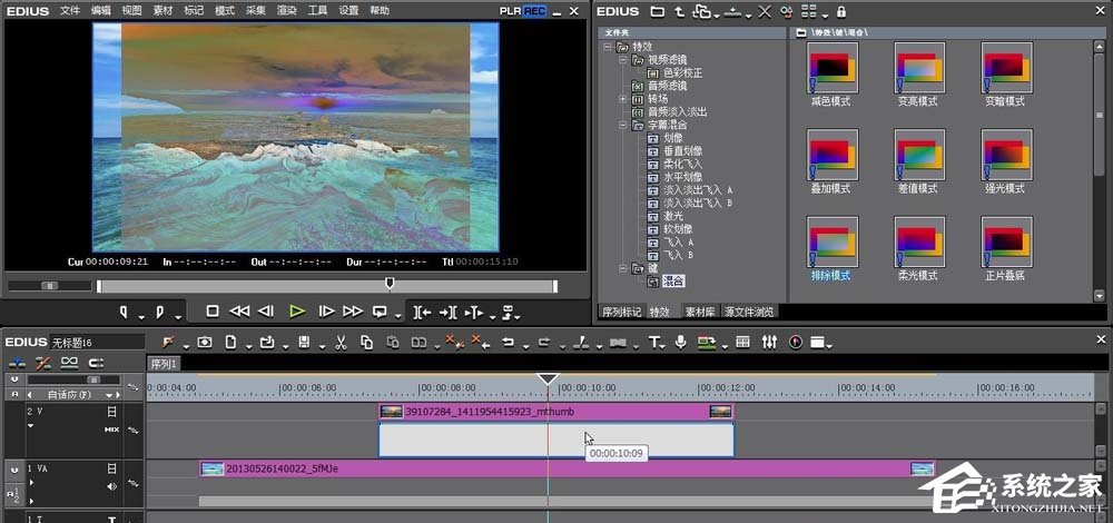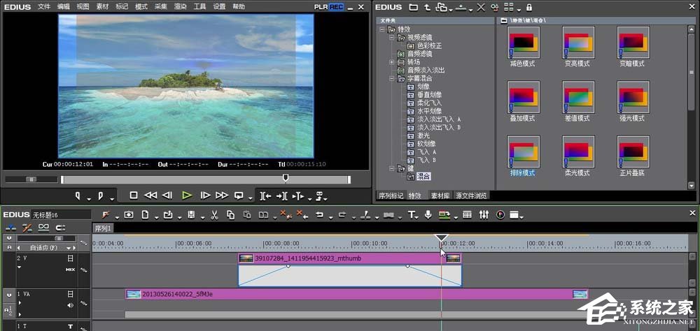 EDIUS 是一款很不错的非线性视频编辑软件,当我们在编辑视频时,要用到排除模式,我们应该怎么操作呢?相信有很多EDIUS的新用户对这个功能还不是很了解,那么接下来小编就为大家介绍一下EDIUS中排除模式的具体使用方法。 方法/步骤 1、首先是要找到这个-排除模式-的存在位置:特效-键-混合。 2、导入我们要编辑的两段素材,图片视频皆可。 3、将两张图片进行上下两个图层的导入,最好是形成上下叠加的关系。 4、找到刚才的排除模式,进行拖拽添加,添加到上层素材,形成默认的排除模式。 5、打开上层素材的透明度关键帧参数,进行排除模式关键点的添加。 6、还可以继续调节关键点的位置,使其形成排除模式的渐变。 |