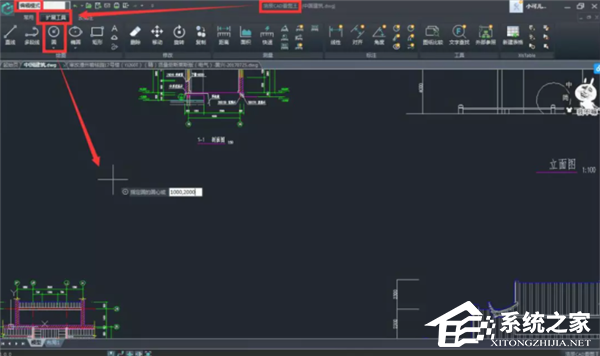 4、确定圆的半径,同样有两种方法,一种是直接在界面上用鼠标点击一个位置作为圆的半径,另一个就是直接输入半径长度,如下图所示: