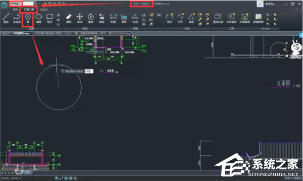 2、 在界面左上方进行切换,进入编辑模式,选择绘图功能中的圆命令。