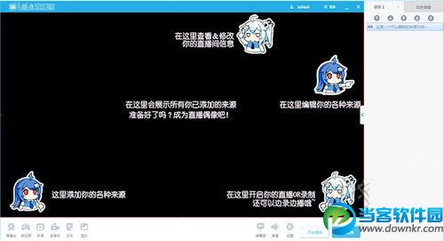 左下: 为各种来源添加按钮,从左到右依次为摄像头,游戏源,抓屏,多媒体,文本,图片。