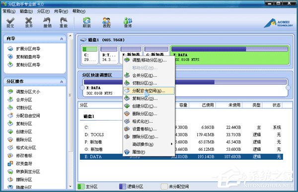使用电脑过程中,磁盘空间不足可能是最经常出现的问题了,很多时候有些分区剩余空间已经捉襟见肘了,但有些分区却有很大的空间未被使用到,这时候我们就可以使用分区助手的分配自由空间功能将一个分区的多余空间分配到另一个分区了。那么,分区助手怎么分配自由空间到其他区呢?下面,我们一起往下看看吧! 方法步骤 1、运行分区助手,磁盘状况如图1所示,从主界面上您可以看到E盘有约302GB,C盘只有约29GB,下面就以从E盘向C盘分配10个GB的自由空间来扩大C盘为例; 2、选中E盘,点击鼠标右键选择“分配自由空间”或者在左侧的分区操作上选择“分配自由空间”; 3、在弹出的窗口中输入分配未使用空间10GB从(E)给:C ,就是指要从E分配出10GB大小的未使用空分配给C; 4、执行完以上操作时,可以在软件界面上看到您所做操作的预执行情况,C盘增大了10GB,而E盘缩小了10GB,看下是否达到了您想要实现的目标,然后点击工具栏的“提交”按钮,在弹出的窗口点击“执行”,操作过程中可能要重启电脑,点击“是” 以让程序在重启模式下完成等待执行的操作; 5、有时不是必须要重启,但是当前要进行操作的分区上有程序正在运行,点击“执行”后会弹出,如图5所示的提示对话框,提示关闭正在这个分区上运行的程序,点击“重试”,可以关闭当前正在运行的程序,避免重启。 注意: 1、 分区软件建议安装在C盘。 2、 执行过程中可能需要花一会时间,所花时间的长短由分区中的数据的多少而定。这需要您耐心地等待,请不要强行终止程序。 3、 对每个分区进行操作的之前最好先进行磁盘检查(chkdsk),如果有错,请先修复错误,之后再打开软件执行操作。 |