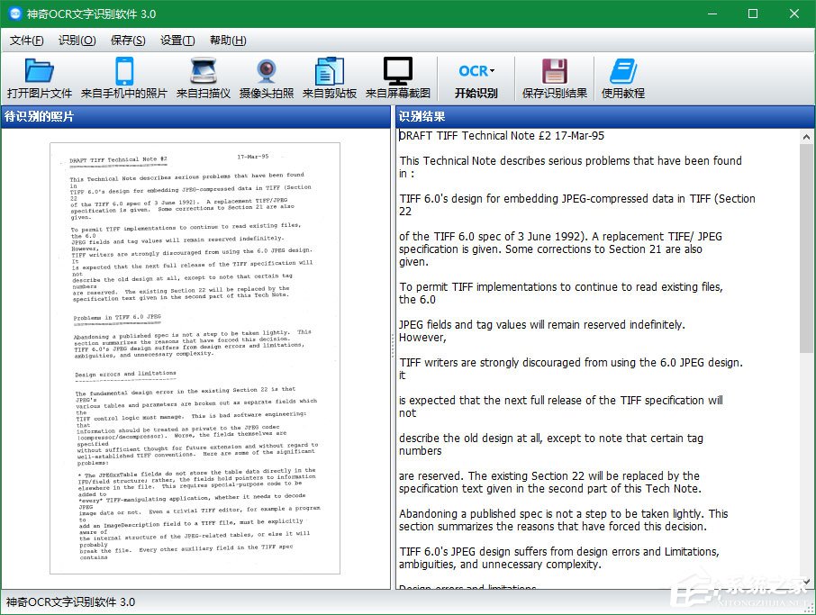 3、点击“开始识别”按钮,选择识别语言,此处选择“English”,软件便开始识别左侧待识别的内容,识别完成后;