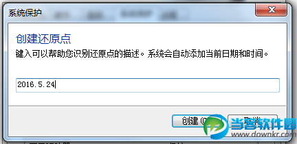 3、在弹出的系统保护框中,填写还原点的名称以及描述,系统会自动添加当前日期和时间。