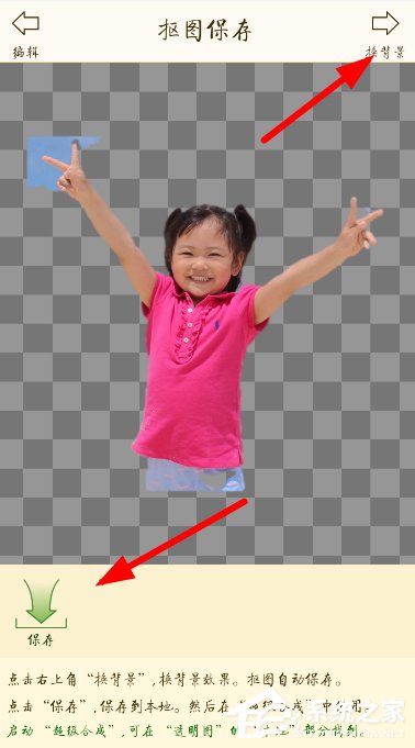 3、成功保存当前抠图的内容后,大家还可以一键更换图片的背景,然后点击底端“保存”按钮确认完成编辑就行了。