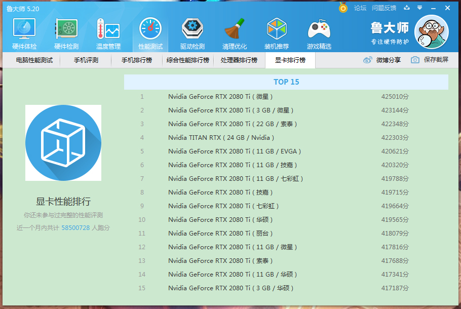 这时用户就可以看到最新的TOP15显卡排行榜了。