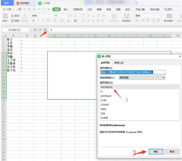 现在excel在我们日常学习和生活中扮演着重要的角色,学会用好这个软件能够帮我们解决日常生活以及工作上的表格制作。在工作中有些时候需要快速合并名单,接下来就给大家分享一下如何在Excel中快速合并名单。 Excel中快速合并名单步骤: 1、首先打开要一张工作表,如下图所示: 2、在姓名旁边的B列单元格输入逗号: 3、下拉填充,将整列单元格填充逗号: 4、选中多个单元格并合并,给名单留下足够空间: 5、在单元格内,插入函数“PHONETIC”,点击确定,如图所示: 6、在弹出的选项卡内,选择所要合并区域,下图为A1:B10,点击确定: 7、合并后的名单如下图所示: 以上就是关于Excel中快速合并名单的全部介绍了,系统之家还有更多关于Win7系统的介绍噢~ |