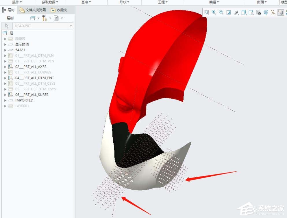 1、打开软件Creo parametric,然后打开举例的图档,如下图所示。