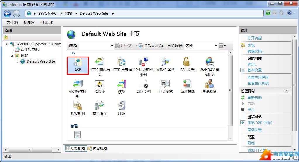 八、在IIS主界面,单击右侧的“绑定...”,选中你要绑定的网站,单击“编辑”