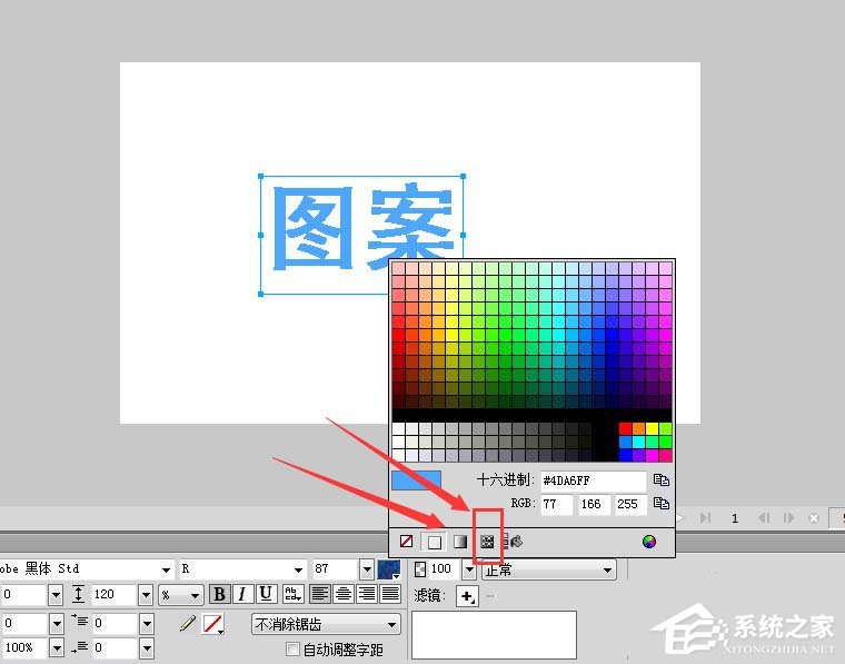 2、然后在颜色下方的选择栏中有个图案的标志,如图所示;将其点击打开