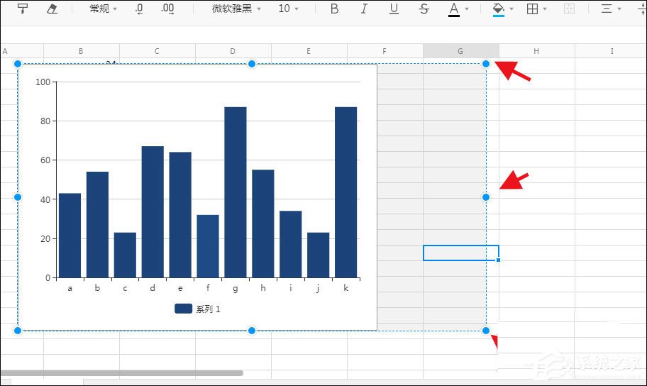 4、直接点击图表周围的操作点,可以调节大小;