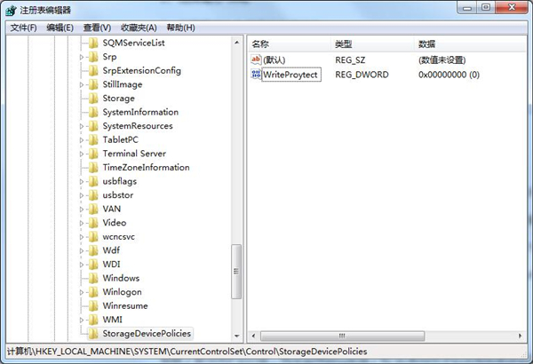 补充说明:注册表中的HKEY_LOCAL_MACHINESYSTEMControlSet002Control StorageDevicePolicies;HKEY_LOCAL_MACHINESYSTEMControlSet001Control StorageDevicePolicies中WriteProtect值亦更改为0。