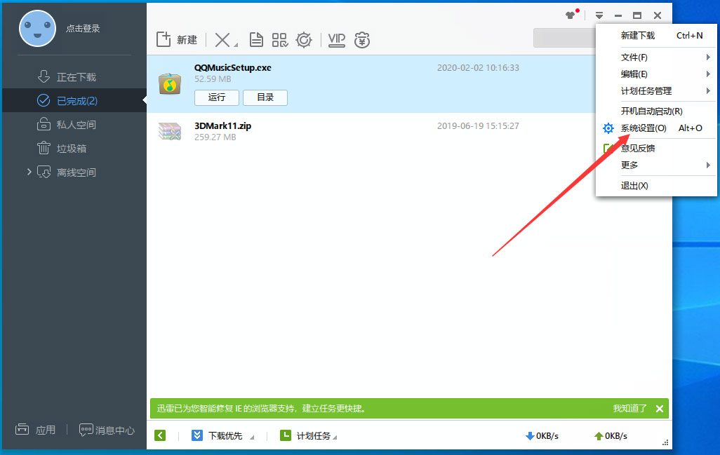 打开迅雷极速版,进入系统设置页面