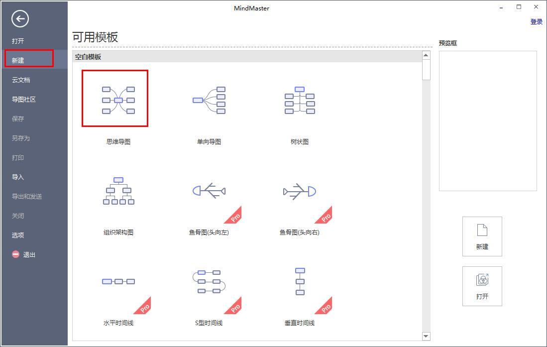 2、找到新建,右边选择合适的模板创建。