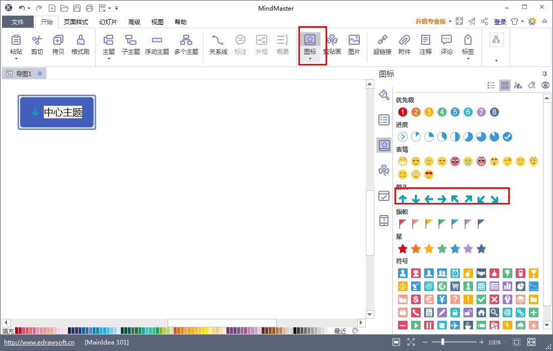 Mindmaster是一款使用便捷的思维导图软件,该软件提供大量的导图模板,可以将繁杂的文字内容整合成一个导图,既实用又简单,箭头是制图过程中最常用的一个图标了,可以明确的指出表达的内容,那么,接下来就由小编来告诉大家Mindmaster给主题添加箭头图标的方法。