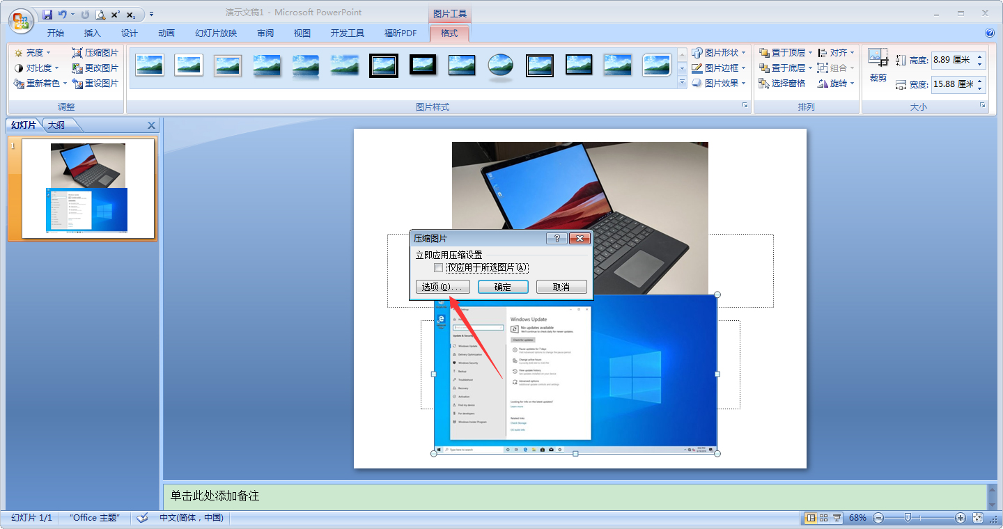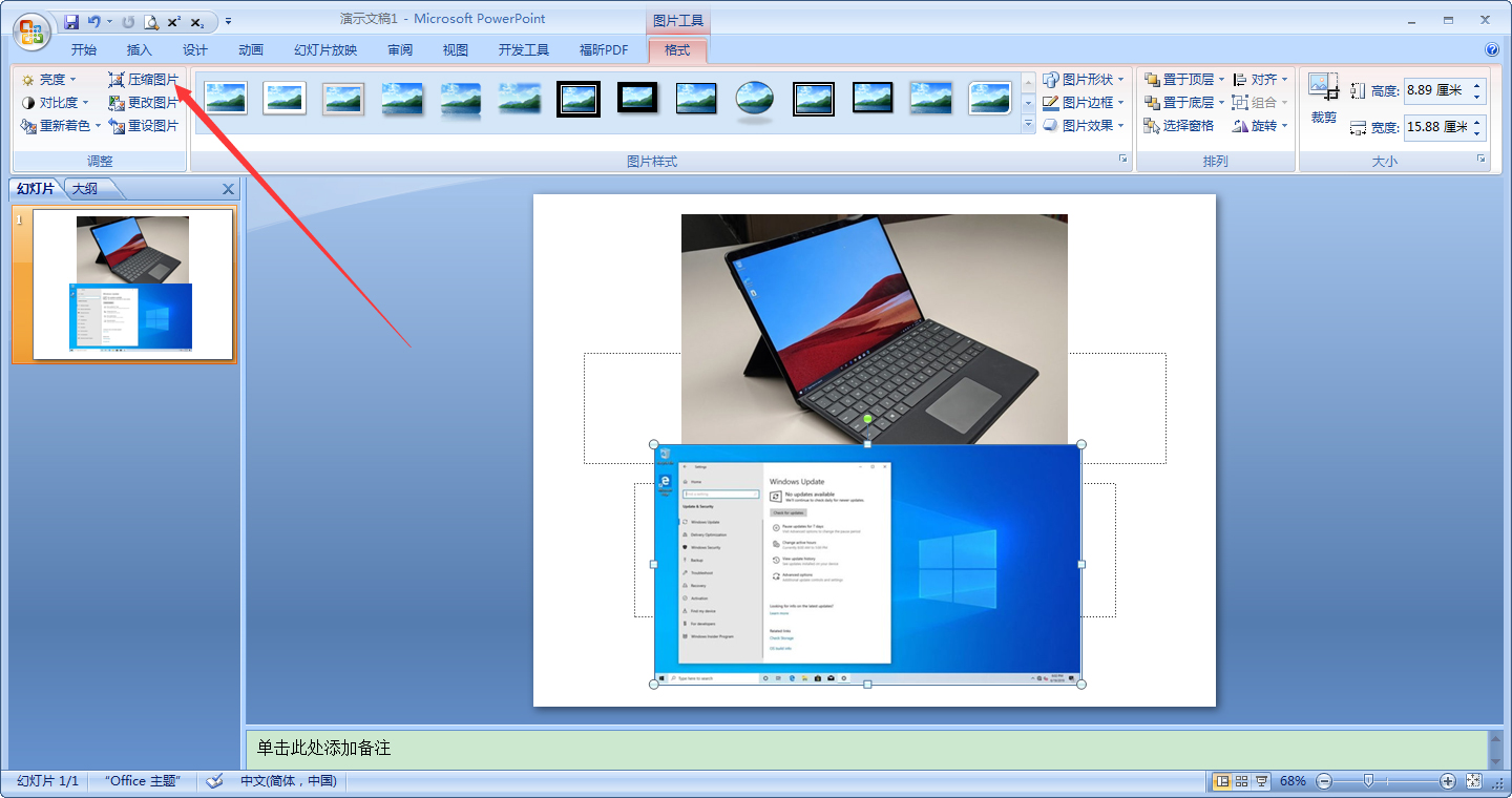 选取需要压缩的图片,并点击“格式”、“压缩图片”;