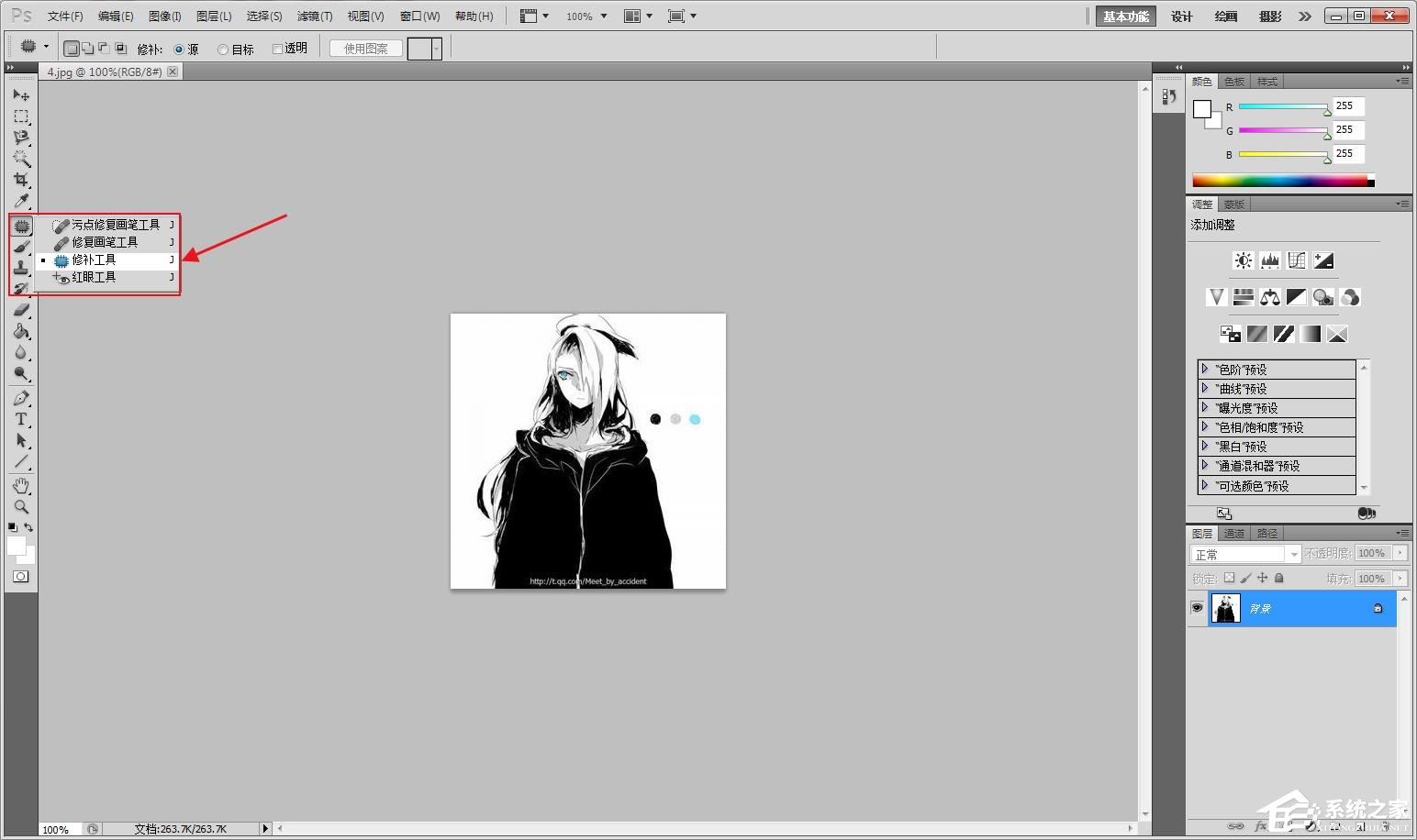 一、以Ps CS5为例,把一张需要抹除的照片导入到Photoshop中。