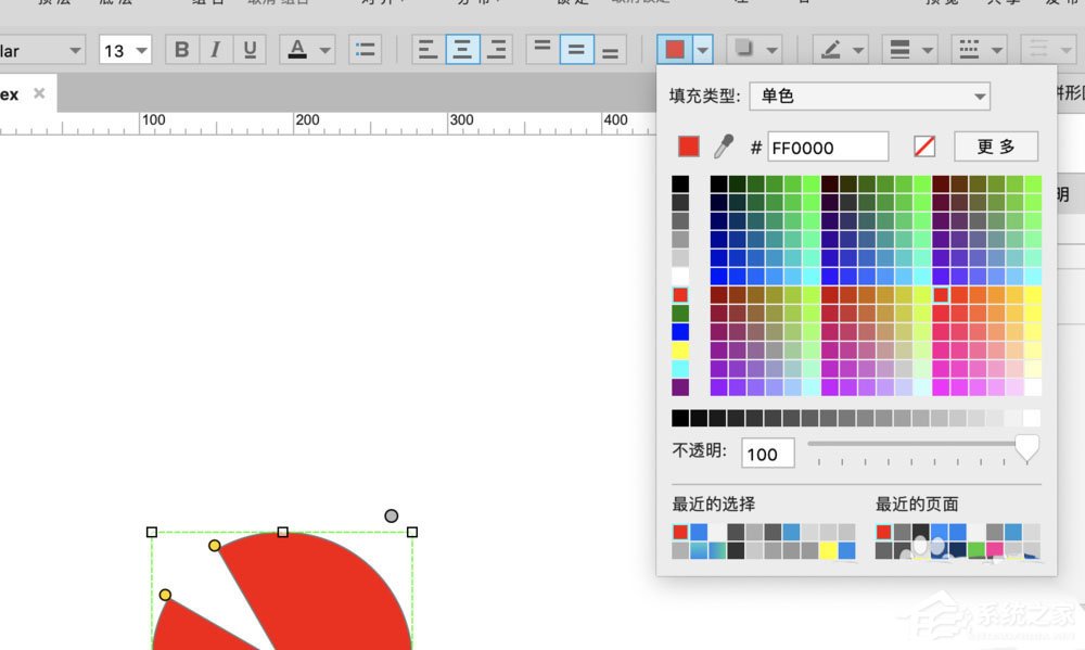 3、给椭圆形添加填充颜色为红色(如图)。