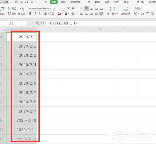 6、此时我们发现选中的区域内全部自动生成了日期: