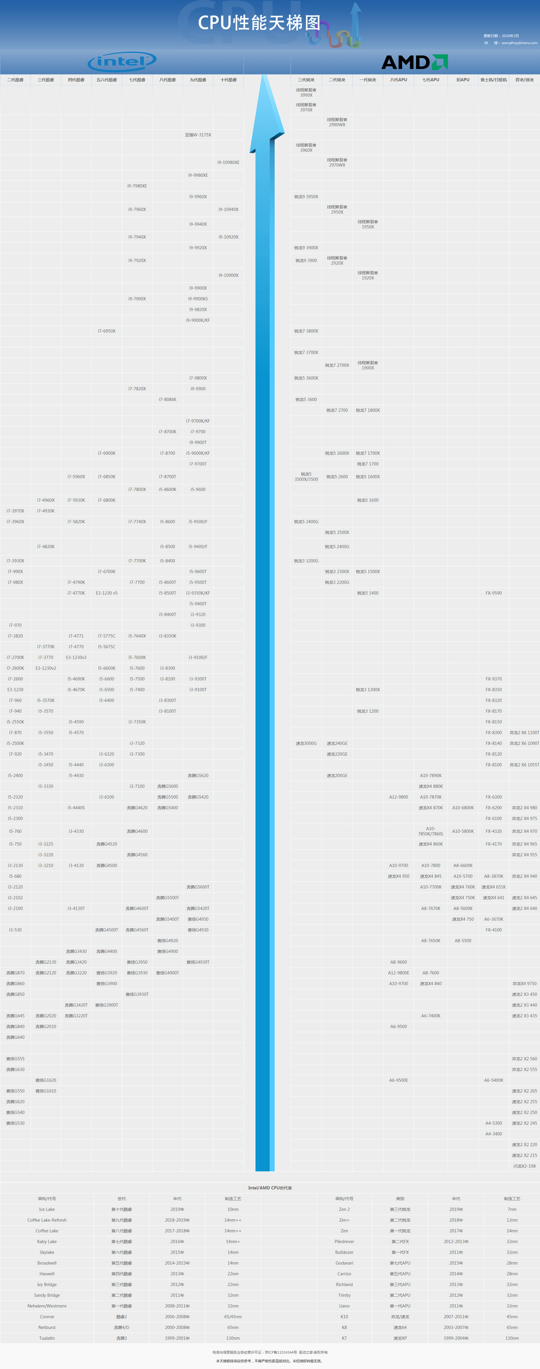鉴于CPU产品的性能每隔一段时间都会有所提升,那些有意在近期更换新设备的朋友就很有必要关注最新CPU产品的性能差距了,毕竟谁也不希望送钱给一些“奸商”!针对这一情况,小编今天为大家带来了2020年2月最新的桌面级处理器天梯图。