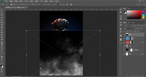 13、回到菜单栏文件-置入嵌入对象,将烟雾素材导入进来,调整位置和大小,如下图;