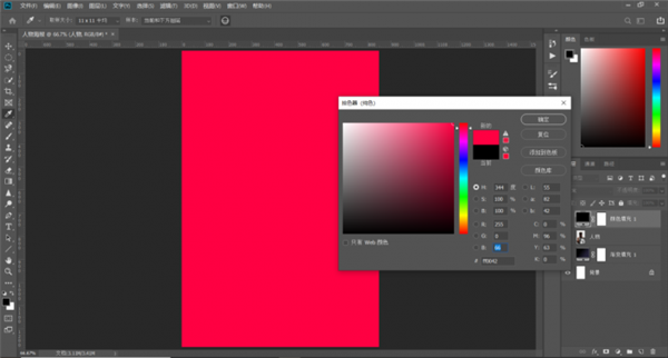 6、新建一个纯色调整图层,设置一个红色系的颜色,像下面这样,一会颜色不合适,我们可以随时调节;