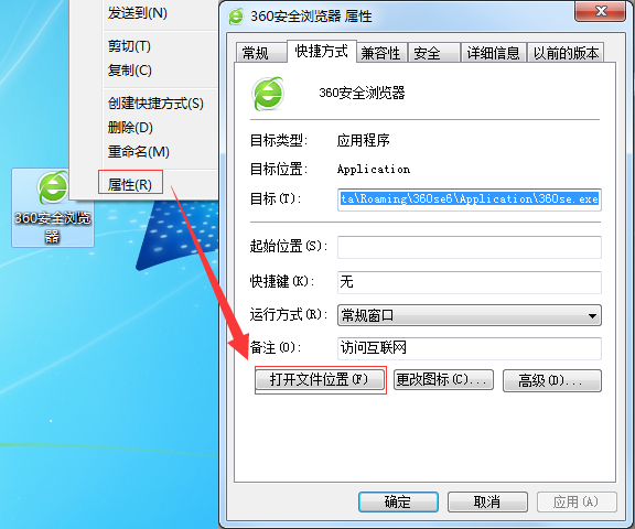 右键快捷方式,点【属性】—【快捷方式】—【打开文件位置】;