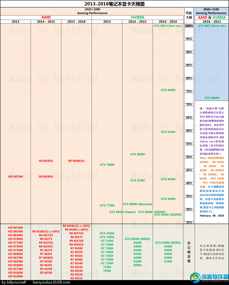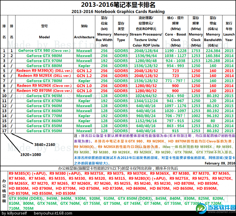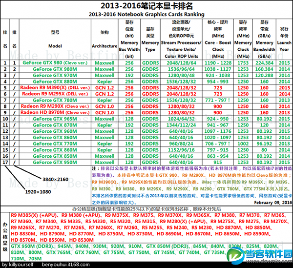 2016年最新笔记本显卡天梯图 笔记本显卡性能排行
