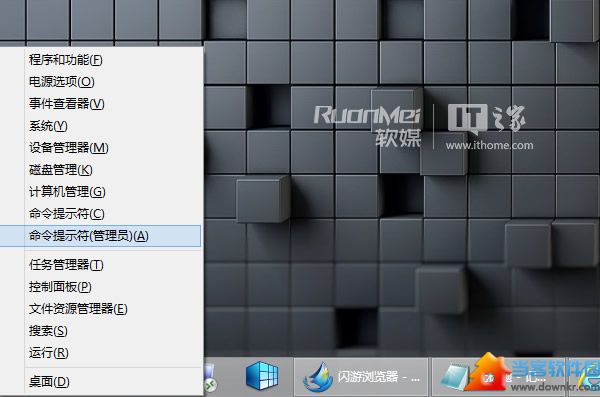 在Win8里面,Win+X双键打开菜单,点击“命令提示符(管理员)”即可——