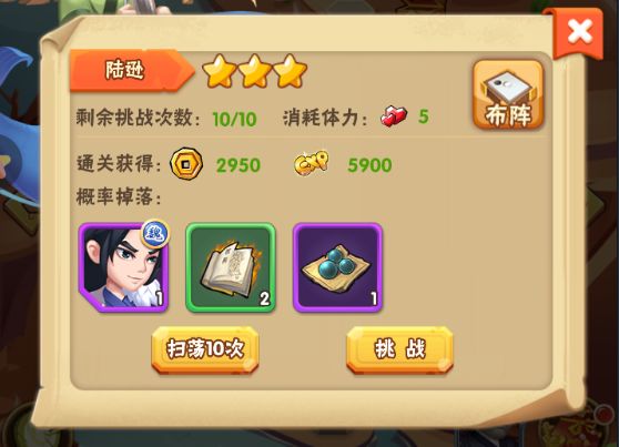 这个就很明显啦,只要你通过的三星以上的副本都可以进行扫荡(ps:不同关卡里的材料也不同哦,可以选择你最缺的材料关卡进行扫荡)当