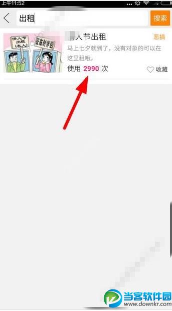 2、然后输入出租,点击搜索!出现情人节出租,点进去。