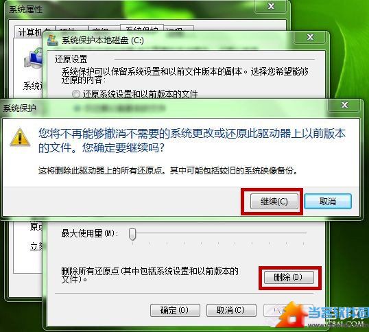 5、删除完后,会弹出下图的窗口,这就证明你已经成功删除Win7中的还原点,其他的窗口点击“关闭”,即可。