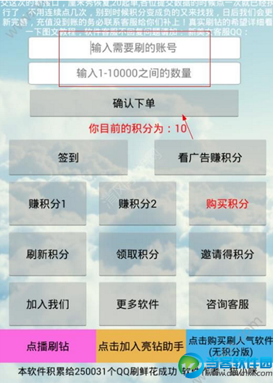最近qq厘米秀很火,但是qq厘米秀里面有送鲜花,那么在qq厘米秀里面怎么送鲜花么?qq厘米秀怎么刷鲜花呢?今天当客小编就教大家qq厘米秀刷鲜花的方法教程。 最近,许多网友都在玩QQ厘米秀,其中,一些网友想知道:厘米秀怎么刷鲜花。关于这个问题,日前小编已经获得了解决方法,不过,要厘米秀要刷鲜花,需要使用到的道具就是:QQ厘米秀刷花软件,一起来看看QQ厘米秀刷花软件是一款什么软件,怎么使用吧! QQ厘米秀刷花软件是一款在线玩qq厘米秀的平台,这里有各种3d卡通人物,用户可以自己动手制作炫酷呆萌的形象,同时还能在线刷赞和花花;很多人都在问厘米秀刷花软件如何刷花?下面请看厘米秀刷花软件刷花方法! 打开厘米秀刷花软件,在首页中输入要刷的账号以及要刷的数量,然后点击确认下单即可快速刷数量; 注:用户在刷之前必须拥有充足的积分才能刷花哟。 说明: 由于之前服务器冲击大,导致一直刷不上,现在更换了接口 ,之前成功的订单都会刷完数量,大家不用担心,23点之前18交的订单请等刷完了在提交这次的新接口,厘米秀恢复,20起单,各位提交数据的时候点一次就已经执行了,不用连续点几次,别到时候积分变成负的又来找我,曰后我们会新完善,充值没到账的务必联系客服给你们补上! 以上就是当客小编整理的关于qq厘米秀刷鲜花的方法教程,更多资讯欢迎关注当客下载站。 |