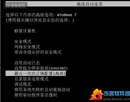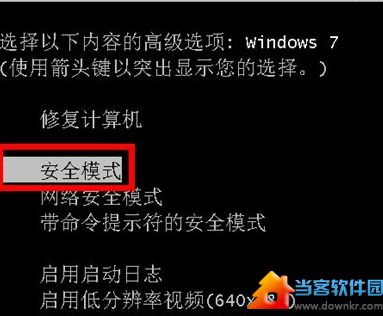 如果这种方式仍然无法解决的话,我们还是在系统开机时长按F8,进入系统的高级启动选项。这一次我们选择的就不再是最近一次的正确配置(高级),而是安全模式,依然按回车确认。