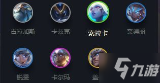 1、黎明使者英雄:古拉加斯、卡兹克、索拉卡、奈得丽、瑞雯、卡尔玛、盖伦
