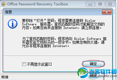 经常使用word2003的用户都会知道怎么设置密码,但是有时候密码太多了忘记了,要怎么破解word2003的文档密码呢?今天当客小编就给大家介绍word2003文档密码破解方法。 有时候使用Word2003软件的朋友,为了重要资料的安全性,有的朋友就会给文档加密。但是文件添加密码多了,有时候也会忘记一些文件的密码。那么,当我们碰到这种情况的时候,要如何破解密码,获得想要的资料呢?这里,小编就给大家推荐下如何用word2003文档破解密码的方法,想要了解的用户就来看看吧。 word2003文档密码破解软件使用方法: 1、双击打开软件,选择“文件”中的“打开文件”,然后选择需要破解密码的Word文件位置;选择文件存放的位置 2、点击“移除密码” 3、在出现这个对话框时,按“确定”按钮 4、此时,正在链接网络破解密码 5、 该文档已经被成功解密 此时,会在你破解的文件地方生成一个相似的文件,打开你就可以清楚的看到里面的内容了。 以上就是当客小编整理的关于word2003密码破解方法,更多资讯欢迎关注当客下载站。 |