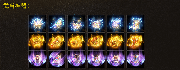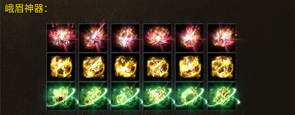 在《狂暴传奇》中,我们加入了神器和法宝系统,各位勇士可以通过击败不同的BOSS以及参与不同的活动,轻松获得它们!它们都带有不同的特殊的属性加成!