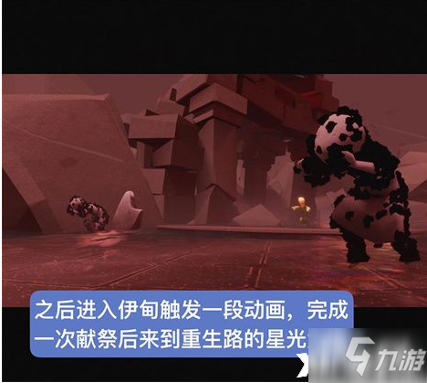 4、最后可以到达光遇伊甸的重生之门,光遇小王子在门里面,带领光遇小王子穿过重生之门,即可完成任务。